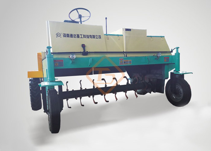 行走式翻拋機(jī)(自行式翻拋機(jī))是生產(chǎn)生物有機(jī)肥專用成套設(shè)備中的主機(jī),該機(jī)采取四輪行走設(shè)計(jì),可前進(jìn)、倒退、轉(zhuǎn)彎,由一人操控駕駛。行駛中整車騎跨在予先堆置的長(zhǎng)條形肥基上,由機(jī)架下掛裝的旋轉(zhuǎn)刀軸對(duì)肥基原料實(shí)施翻拌、蓬松、移堆,車過之后篡成新的條形垛堆。即可在開闊場(chǎng)地,也可在車間大棚中實(shí)施作業(yè)。