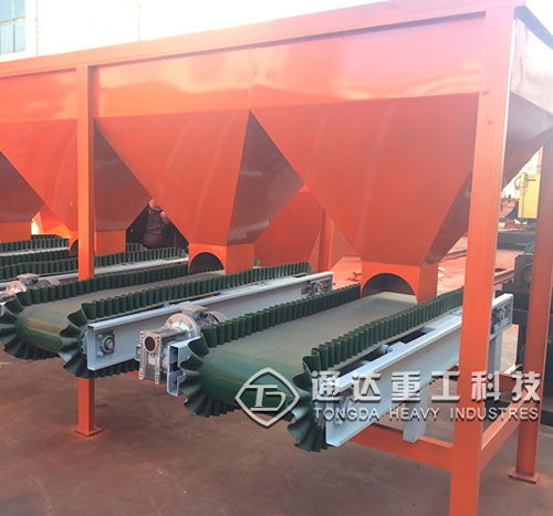 3、調(diào)速膠帶機(jī)承接層狀鋪后卸人一調(diào)速螺旋混合機(jī),經(jīng)上下翻動混勻并推進(jìn)使物料落入下面帶自動計量秤的料斗。